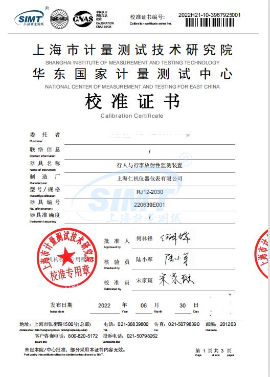 JJF1266-2010 行人與行李放射性監測裝置校準規范